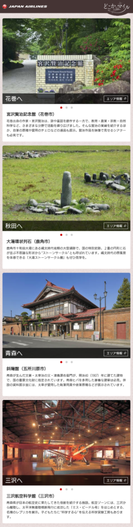 「どこかにマイル」は、システムがランダムに提案する4つの行き先候補から、どこに飛ぶかはJALにお任せというワクワク感が最大の魅力です。